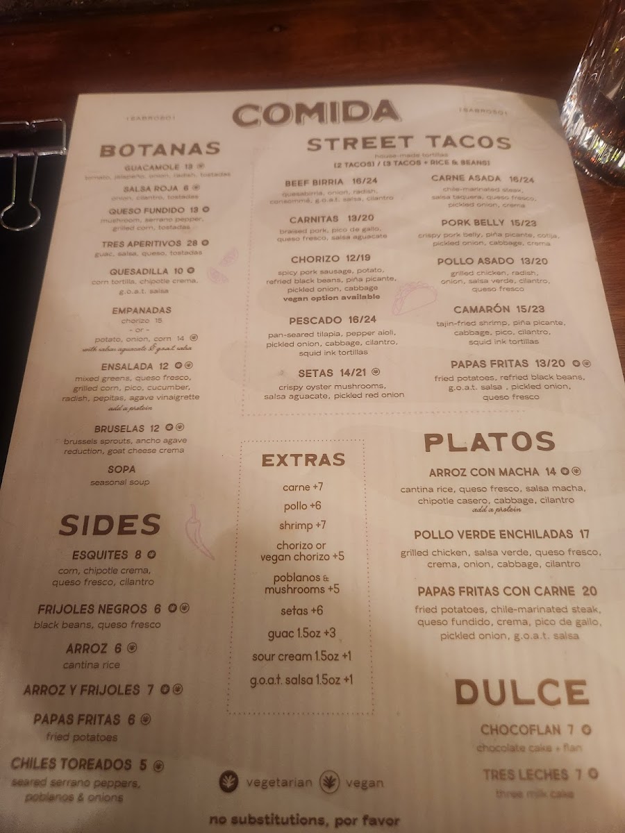 corn tortilla, chipotle crema, g.o.a.t. salsa